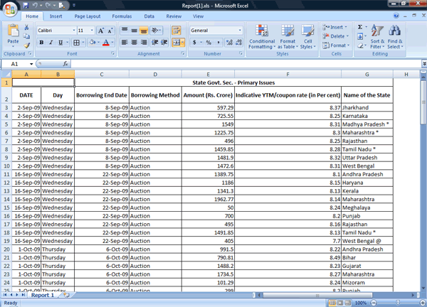 This tree view consists data of rate, yield, turnover of central and state government securities, treasury bills, yield spread and term structure, money market instruments (repo, call market, commercial papers, and certificate of deposits) and forex market rates and turnover sections.