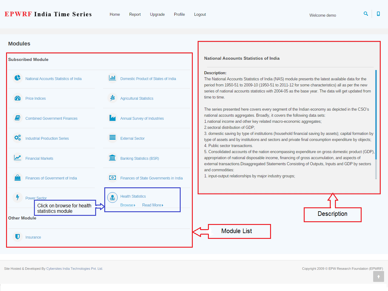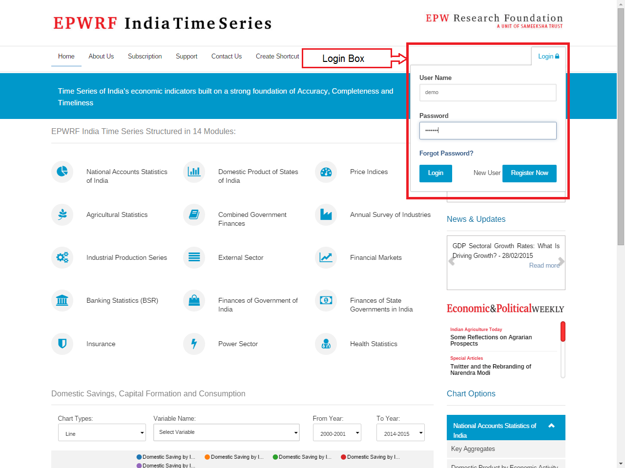 National Accounts Statistics of India, Domestic Product of States of India,Price Indices,Agricultural Statistics,Combined Government Finances,Annual Survey of Industries,Industrial Production Series,Financial Markets,Banking Statistics,Finances of Government of India,Power Sector,External Sector,Finances of State Governments in India,Insurance